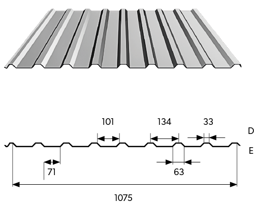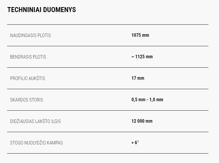Profilis T-18 – tankiai profiliuota trapecinė skarda su drenažo grioveliu, naudojama stogams ir fasadams.