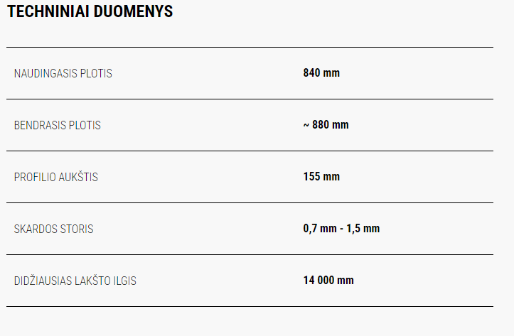 T153-840 – aukštas, labai patvarus konstrukcinis profilis. Daugiausia rekomenduojamas konstrukcijoms su dideliais atstumais tarp sijų. Jo patvarumas leidžia padidinti atstumą tarp atraminių taškų, išsaugant reikiamus projekte numatytų apkrovų perkėlimo parametrus.