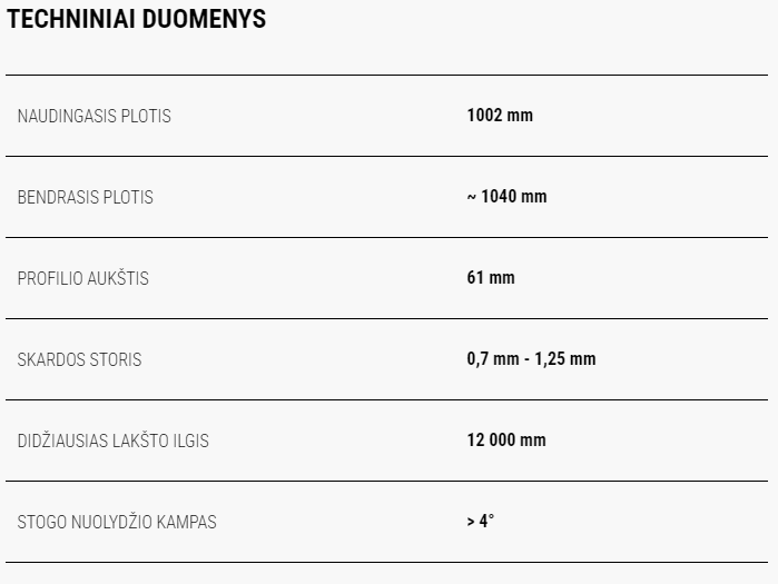 Profilis T60 naudojamas halėms, didelio ir mažo ploto objektams apkalti, daugiausia izoliuojamiems stogams, taip pat ir lauko stoginėms.